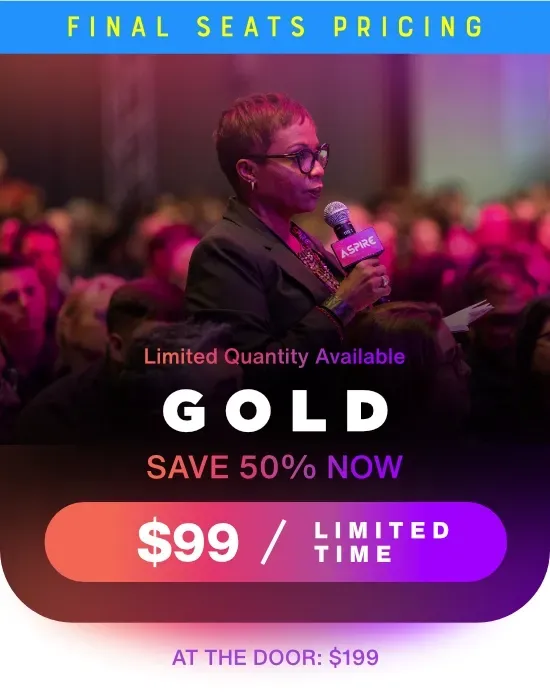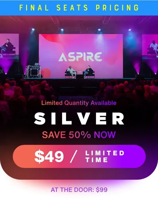 We created Aspire for anyone who knows they have greatness in them but want to aspire to even more, this is the event that will propel you throughout the whole year. The lineup of speakers at Aspire will move you toward exactly what you need to achieve your 2025 goals and beyond.